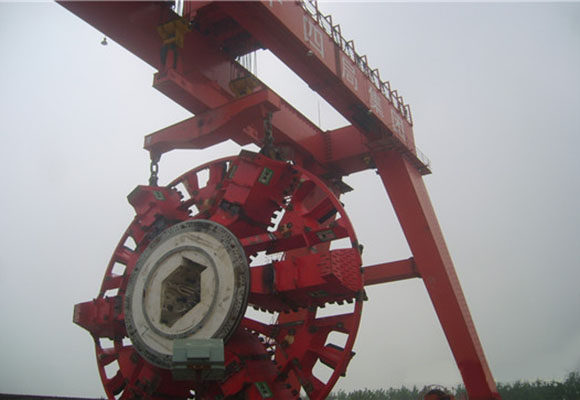 Баштовий кран з подвійним башмаком з щитом, що використовується головним чином для установки ріжучого кріплення і щитка корпусу машини, що не розкопається, а також піднімання сегмента підтримки тунелів під час будівництва.